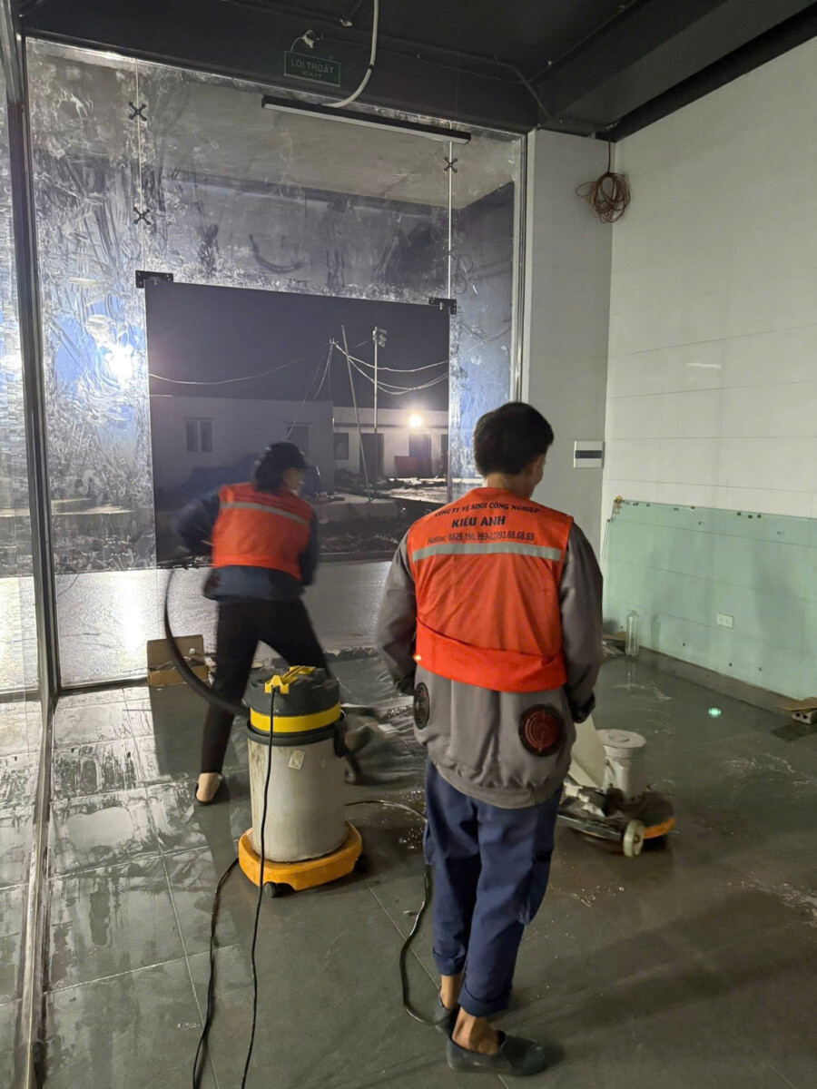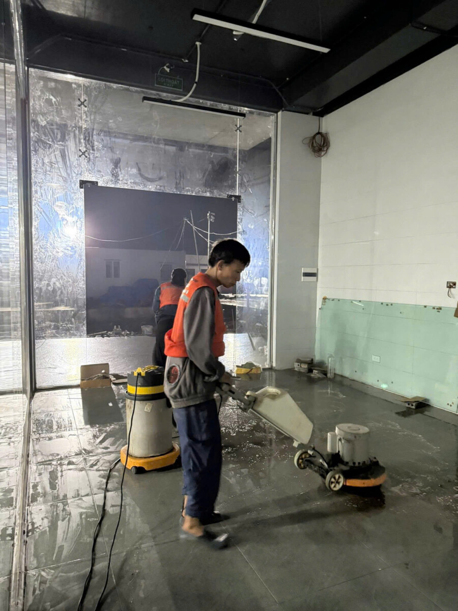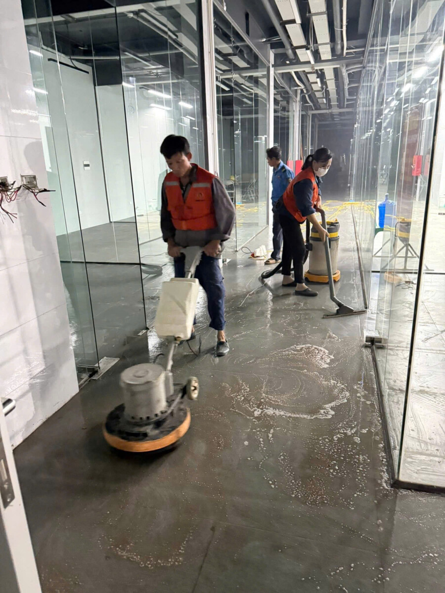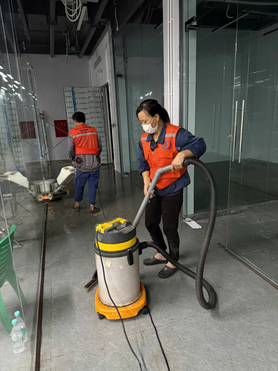 Hút bụi, lau sàn, tẩy rửa vết bẩn: xi măng, sơn, keo, dầu mỡ.