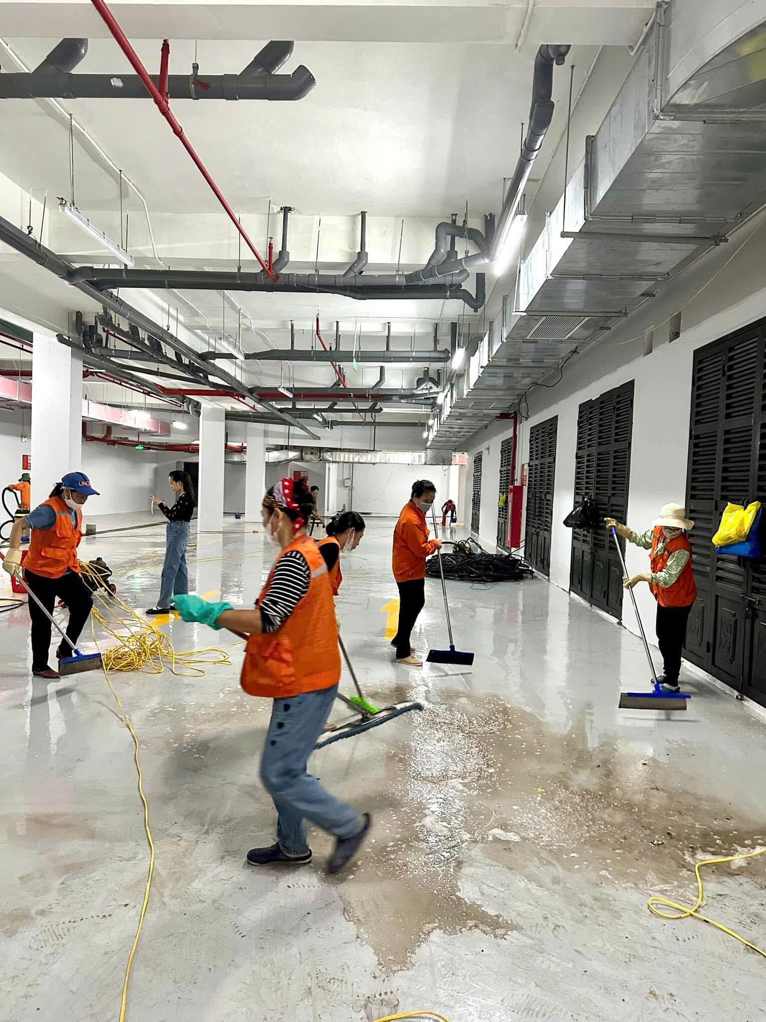 Hình ảnh 2: Nhân viên đang tổng vệ sinh tầng hầm